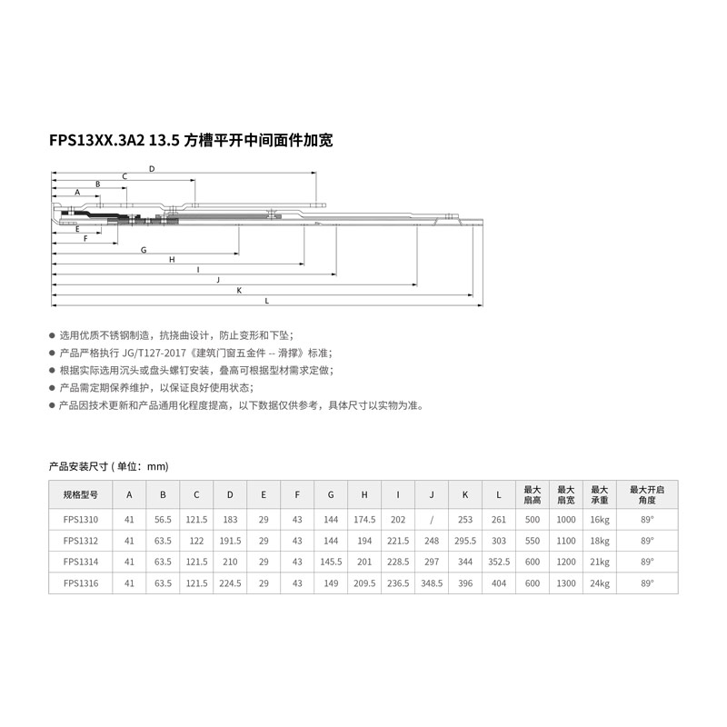 FPS13XX.3A2 13.5方槽平开中间面件加宽