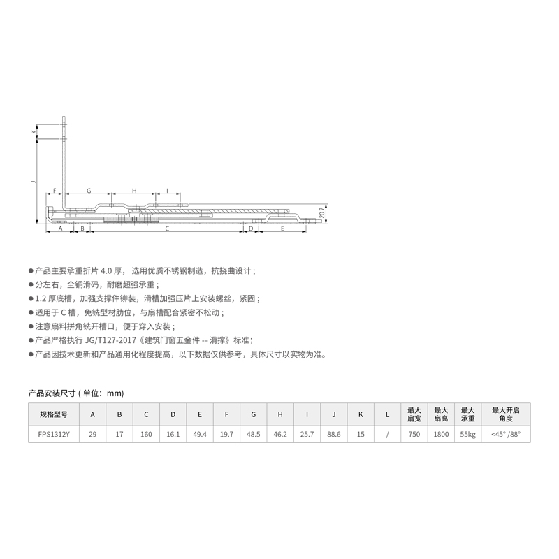 FPS1312J-L/R 欧槽用13.5方12寸重型左右撑